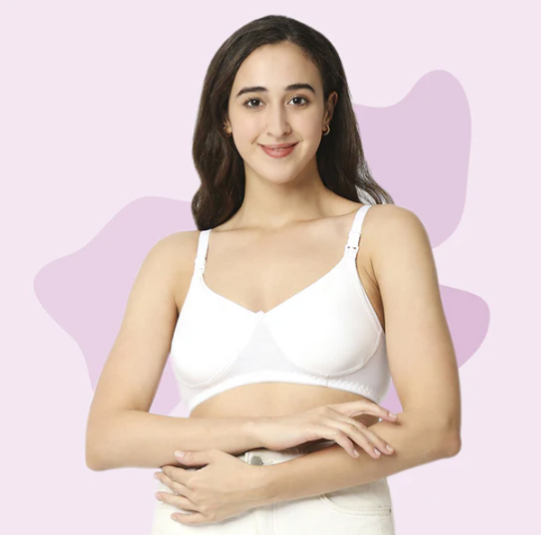 Mee Mee Maternity Nursing Bra with Feeding Option is expertly designed to help you in the course of breastfeeding. These maternity nursing bras have an easy drop clip for breastfeeding and are non-wired providing maximum support. The bra is made from 100% premium cotton and includes soft elastic that fits perfectly. Built with firm straps and broader sides, this feeding bra gives your body solid shape and makes you feel confident. Whenever your toddler’s hungry, you could just unclip the clasp in the front of your strap and feed your child without taking your bra off completely.