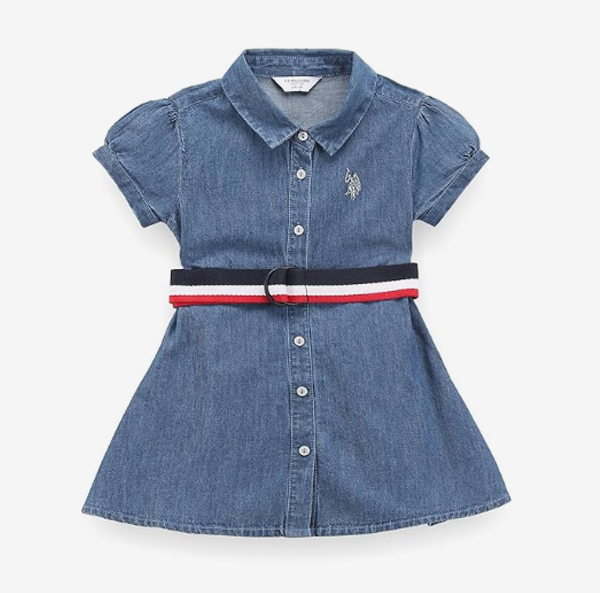 U.S. POLO ASSN. Girls Washed Cotton Knee-Length Dress